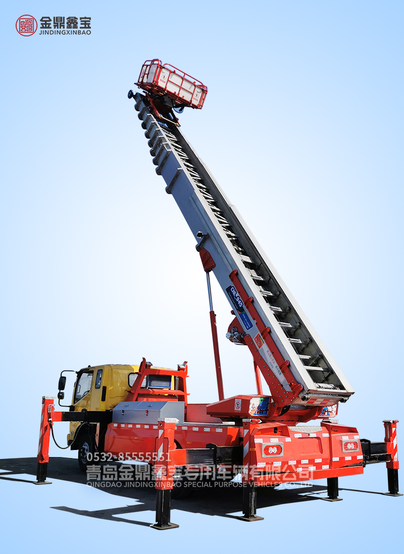 作業範圍可達45米高,青島金鼎鑫寶雲梯車整體采用韓國原裝進口梯臂,最大承載貨物重量400公斤。